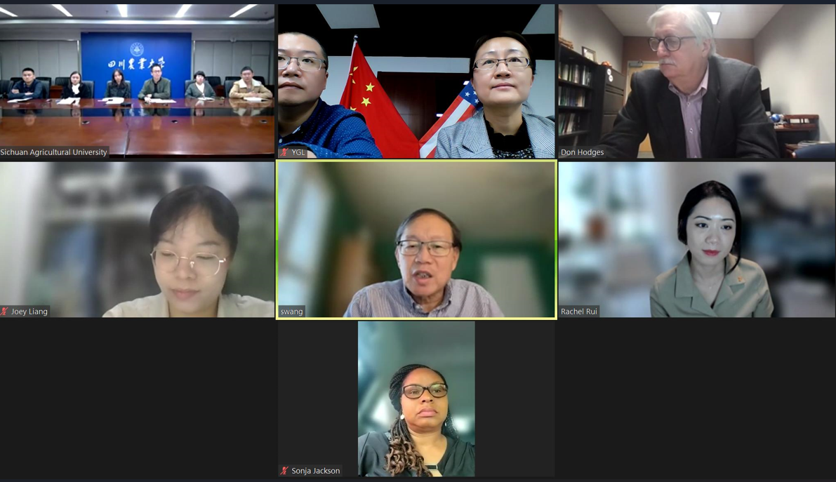 On October 13th, 2022, under the coordination and arrangement of YGL, the first online virtual meeting between University of Tennessee and Sichuan Agricultural University was successfully held, around the topics of joint talent cultivation cooperation.