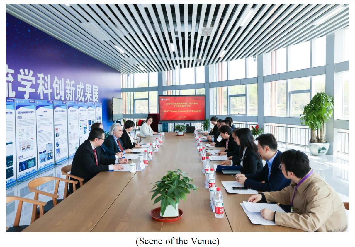 On the morning of April 7th, Nanjing University of Posts and Telecommunications (NJUPT) hosted a delegation from the European University Cyprus (EUC) for an exchange meeting. The delegation included Professor Kostas Gouliamos, former Rector of EUC and recipient of the Chinese Government Friendship Award; Professor Panagiotis Papageorgis, Dean of the School of Sciences; along with Mr. Liu Jiting, Assistant to the Rector and President of YGL, and Ms. Luo Yinglu, Director of the EUC China Office, both representing Beijing Yinggeli Educational Technology Co., Ltd. (YGL). The meeting took place at NJUPT’s Xianlin Campus, with Professor Ye Meilan, President of NJUPT, and Professor Liu Qingshan, Vice President and Member of the NJUPT Standing CPC Council, attended and addressed the gathering. The session was chaired by Ms. Wang Haiyan, Director of the Office of International Cooperation and Exchange.