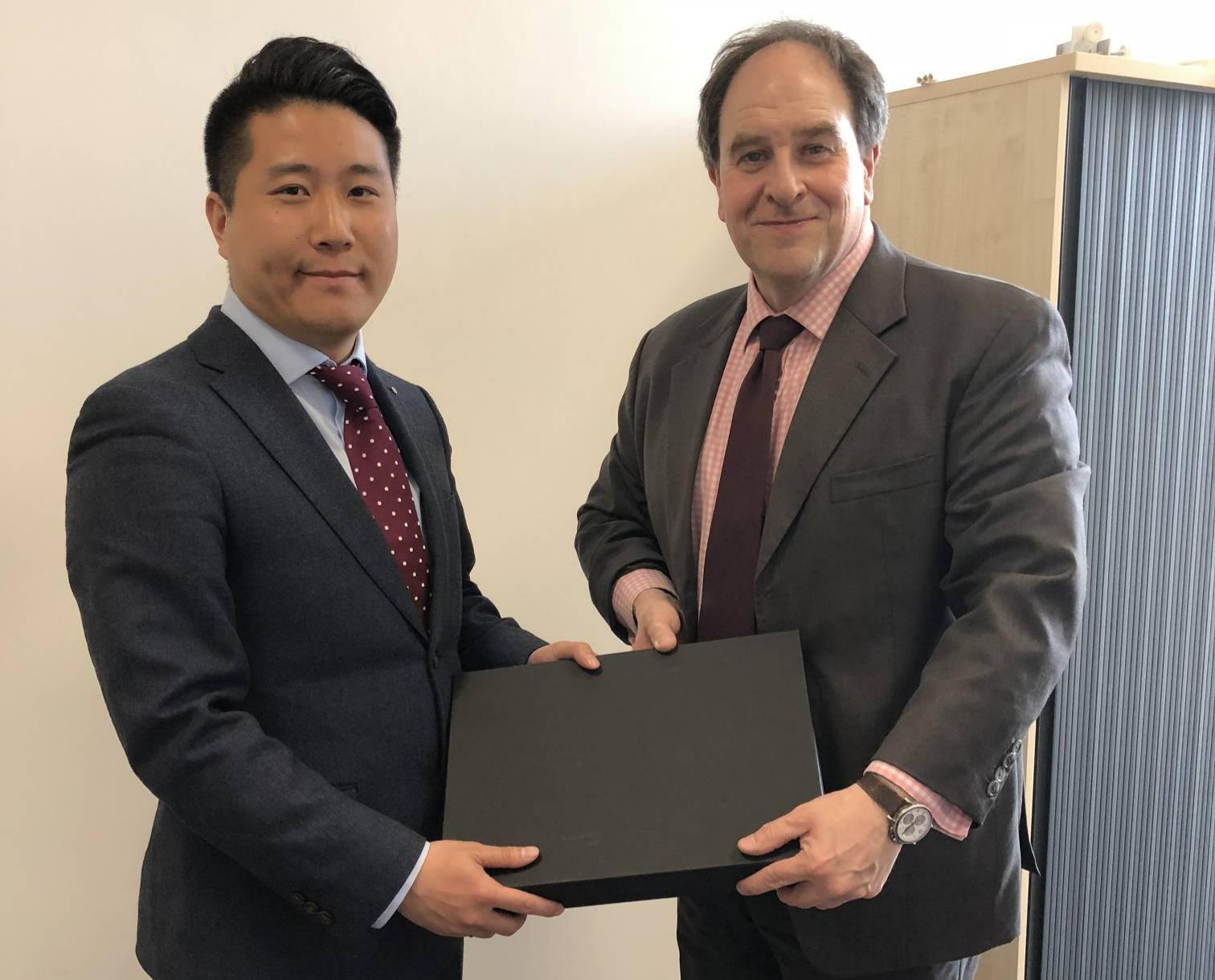 2018.03, YGL paid a visit to Liverpool John Moores University and exchanged presents with Mr Timothy Nichol, Pro-Vice-Chancellor - Faculty of Business and Law.