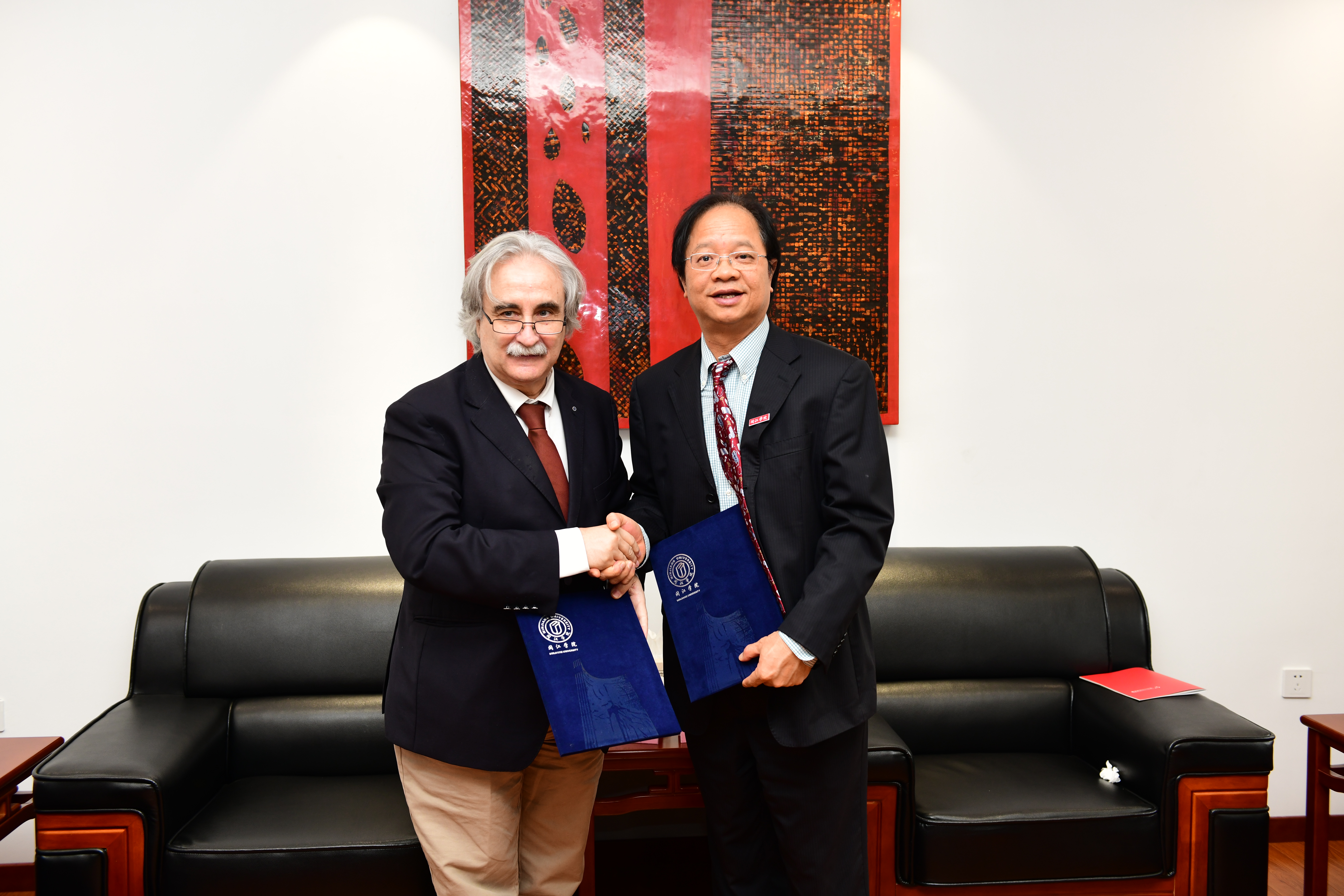 2019.10, YGL accompanied Dr. Phil Harris, Pro-Vice-Chancellor of University of Chester and paid a visit to Minjiang University, took photos with Professor WANG Zonghua, President of MJU.