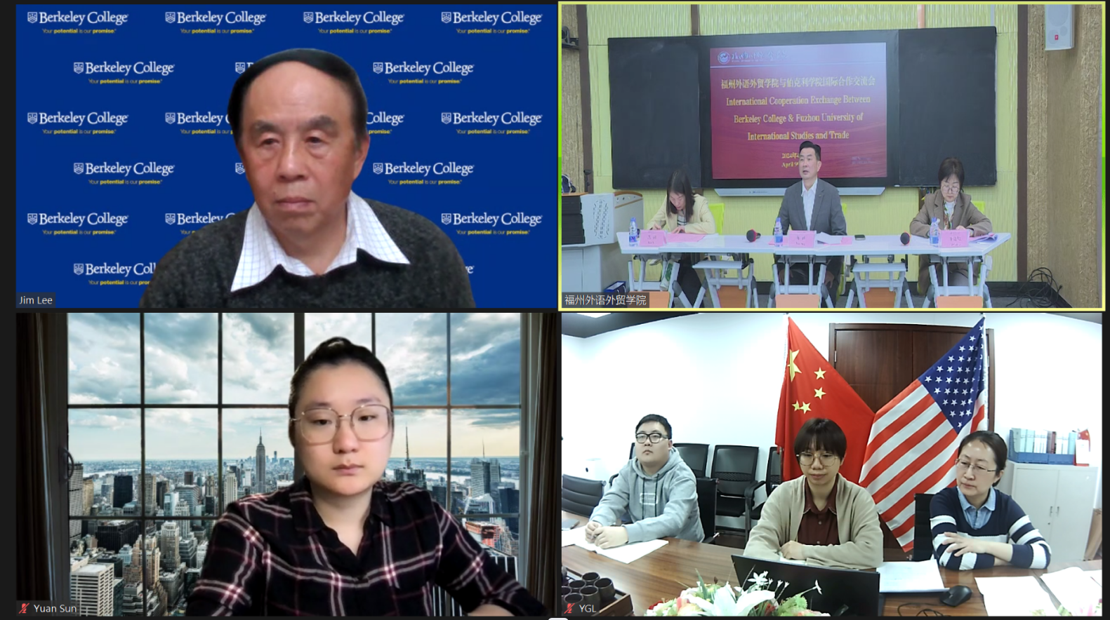 YGL Promoted an Video Conference between Fuzhou University of International Studies and Trade & Berkeley College