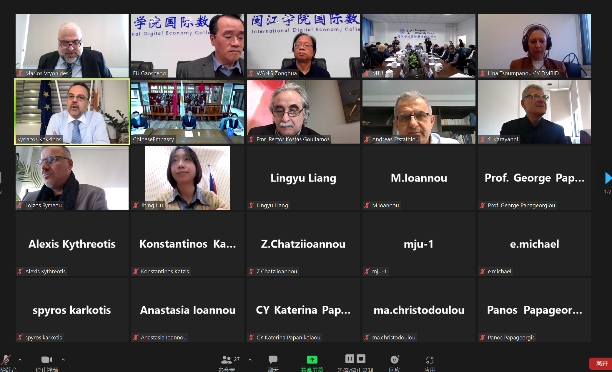 EUC and Minjiang University held online conference celebrating 50th anniversary of China-Cyprus bilateral relationship