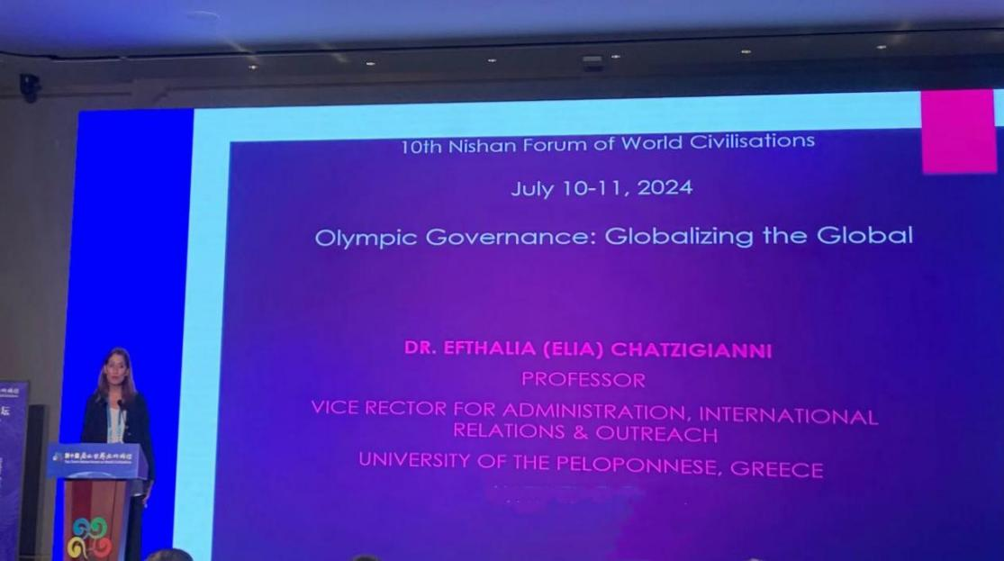 In addition, Shandong Sport University also invited the Efthalia Chatzigianni, the Vice Rector of Peloponnese to participate in the 10th Nishan Forun on World Civilization held in Nishan, Qufu from July 10th to 11th. The Nishan Forun on World Civilization held the first Sports Culture Forum since its establishment in 2010, with the theme of ‘Chinese Traditional Culture and the Olympic Spirit’. Professor Efthalia delivered a keynote speech titled "Olympic Governance: globalising the global". The speech delved into the common values and goals of Chinese traditional culture, Chinese sports spirit and Olympic spirit, actively explored new paths for the inheritance and dissemination of sports culture in the new era.