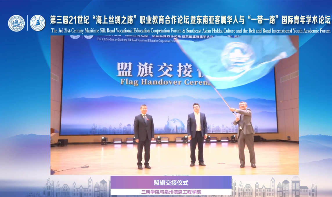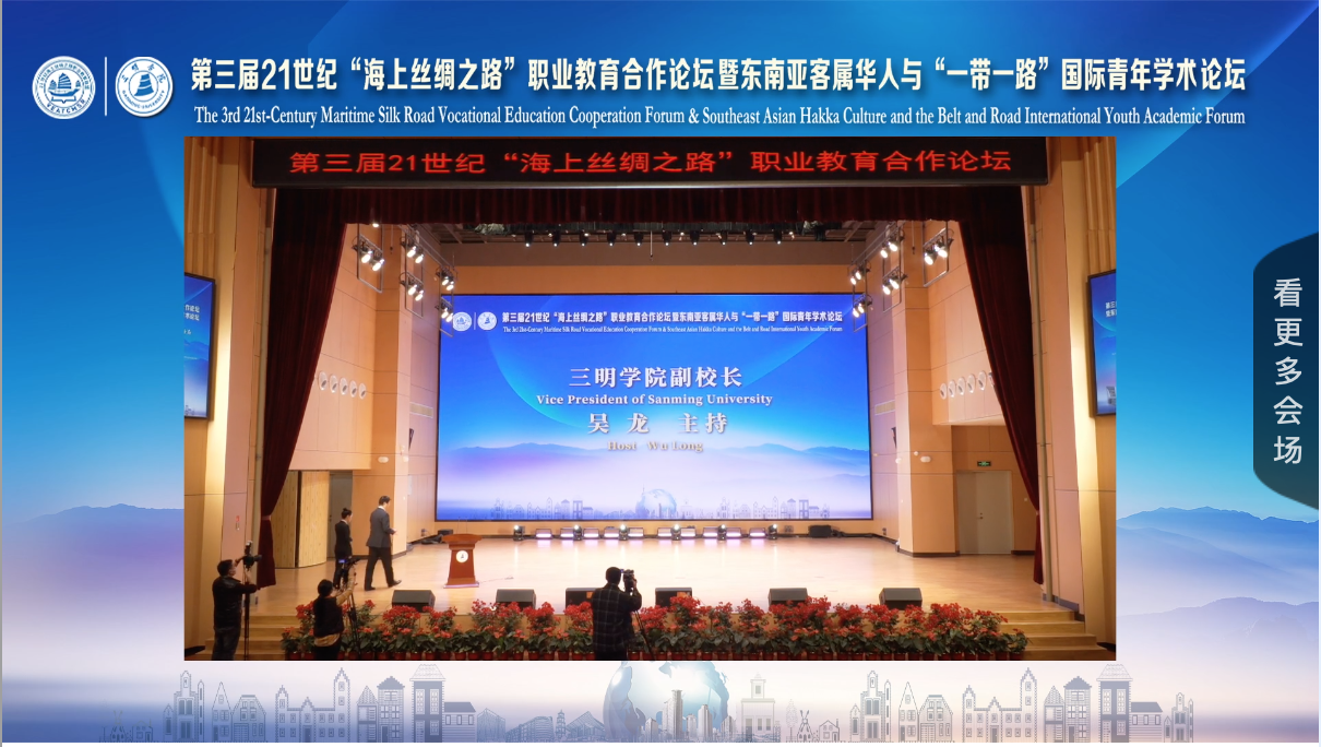 On November 18th, the "3rd 21st-Century Maritime Silk Road Vocational Education Cooperation Forum & Southeast Asia Hakka Culture and the Belt and Road International Youth Academic Forum", jointly sponsored by the Fujian Provincial Education Department, the 21st-Century Maritime Silk Road Vocational Education Alliance, and Sanming University, and supported by Foreign Affairs Office of Fujian Province and Sanming Municipal People's Government, was successfully held in Sanming University. The conference witnessed nearly 200 online and offline attendees including representatives from universities, educational institutions, multinational or foreign companies and other units from different countries and regions such as China, Russia, Ukraine, the United Kingdom, Singapore, Thailand, Indonesia, South Korea and others, experts in the field of Sino-foreign cooperation in running schools, and scholars focusing on Southeast Asia and related topics of the "Belt and Road".
