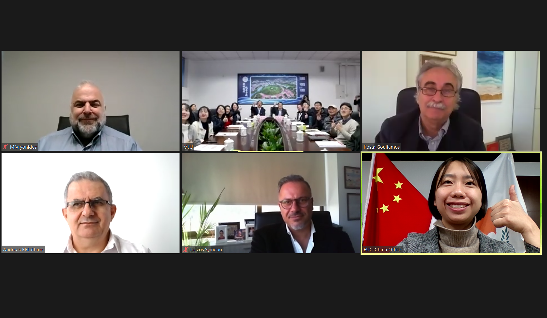 At the meeting, Vice President of Minjiang University Fu Gaosheng introduced the essential points of the Joint Statement of the Establishment of the Strategic Partnership between the People's Republic of China and the Republic of Cyprus. Rector of EUC, Professor Efstathiou expressed that the IDEC is operating well under the effort and commitment from both parties. Under the background of growing friendship of the two countries, EUC will stick with Minjiang University in the further cooperation based rooted in IDEC. Rector Efstathiou also sends out warm welcomes to teachers and students from Minjiang University to visit Cyprus after the pandemic. Professor Gouliamos reflected on the history and the upgrading of Cypriot-China relationship, and how IDEC was established under the framework of "Digital Silk Road" which was proposed by President Xi in 2015. Professor Gouliamos praised YGL as a valuable and trustworthy partner, and the great assistance YGL had contributed in the establishment and operation of IDEC. Other guest attendees from EUC also delivered their speech during the conference, and expressed the positive outlook for the future operation of IDEC. In the end,President Wang from Minjiang University delivered his speech, reviewing the great friendship between China and Cyprus, as well as between Minjiang University and EUC, stating both universities will work closely in the future, to jointly cultivate talents with cross-cultural understanding and integrated skills.