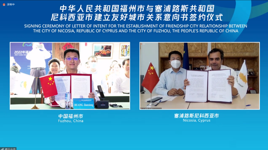 Then comes the highlight of the event. Vice Mayor Huang Jianxiong and Constantinos Yiorkadjis, Mayor of Nicosia, signed a letter of intent to establish friend city relations. As the capital of Cyprus and an economic, cultural and international business center, Nicosia has started to build relations with Fuzhou last year, when the "International Digital Economy College, Minjiang University", a Sino-foreign joint-teaching college organized by Minjiang University and European University of Cyprus, was officially approved by the Ministry of Education, China.