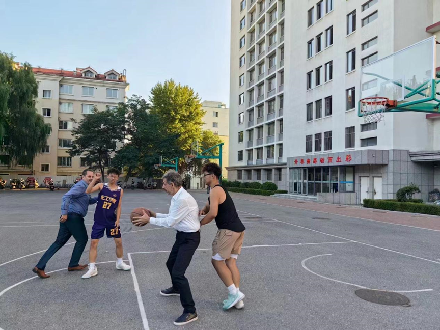 Afterwards Prof. Mantzavinos and Prof. Katsaounis met and communicate with the student representatives of the cooperative project. At the communication meeting, the students exchanged their ideas and asked questions actively that made the professors pleased for the students' enthusiasm for seeking knowledge. After the meeting, the two professors also played a friendly basketball match with the students, ended at the score of 3:3.