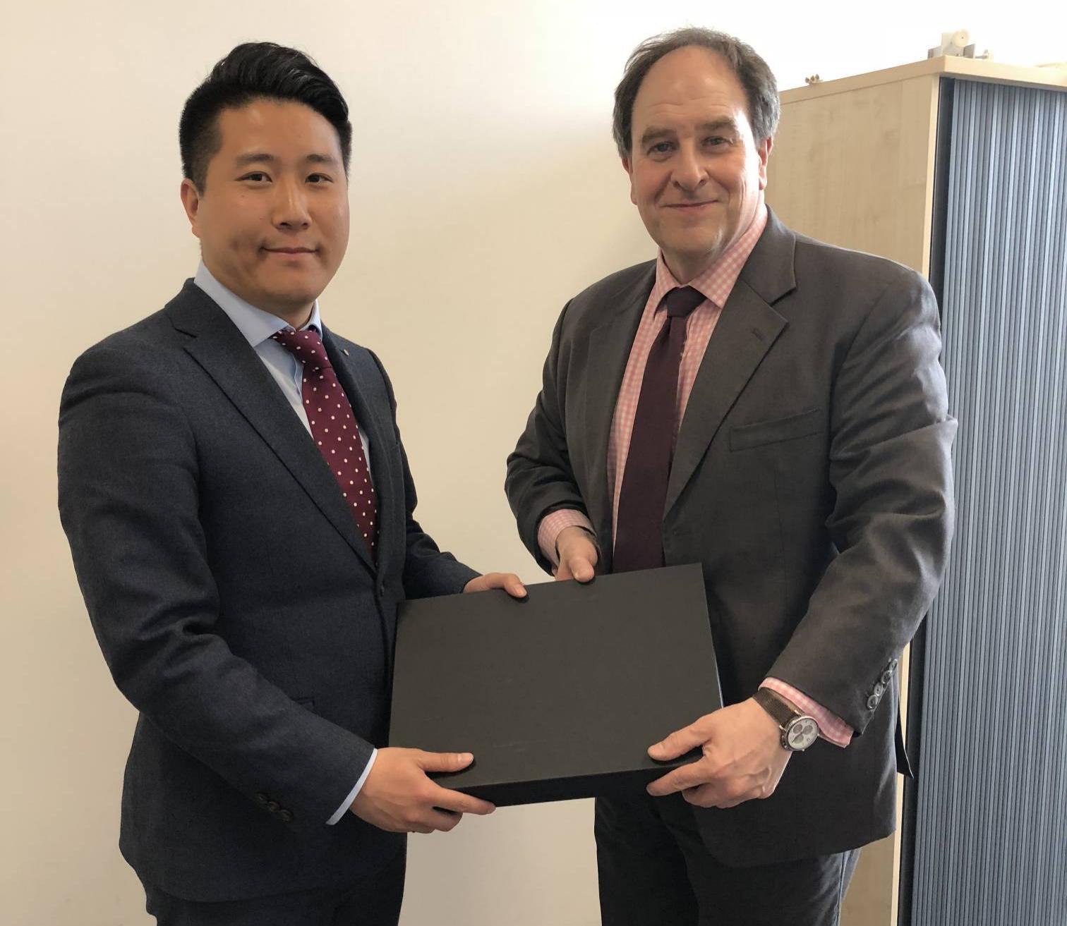 In Mar. 2018, YGL paid a visit to Liverpool John Moores University and exchanged presents with Mr Timothy Nichol, Pro-Vice-Chancellor-Faculty of Business and Law.