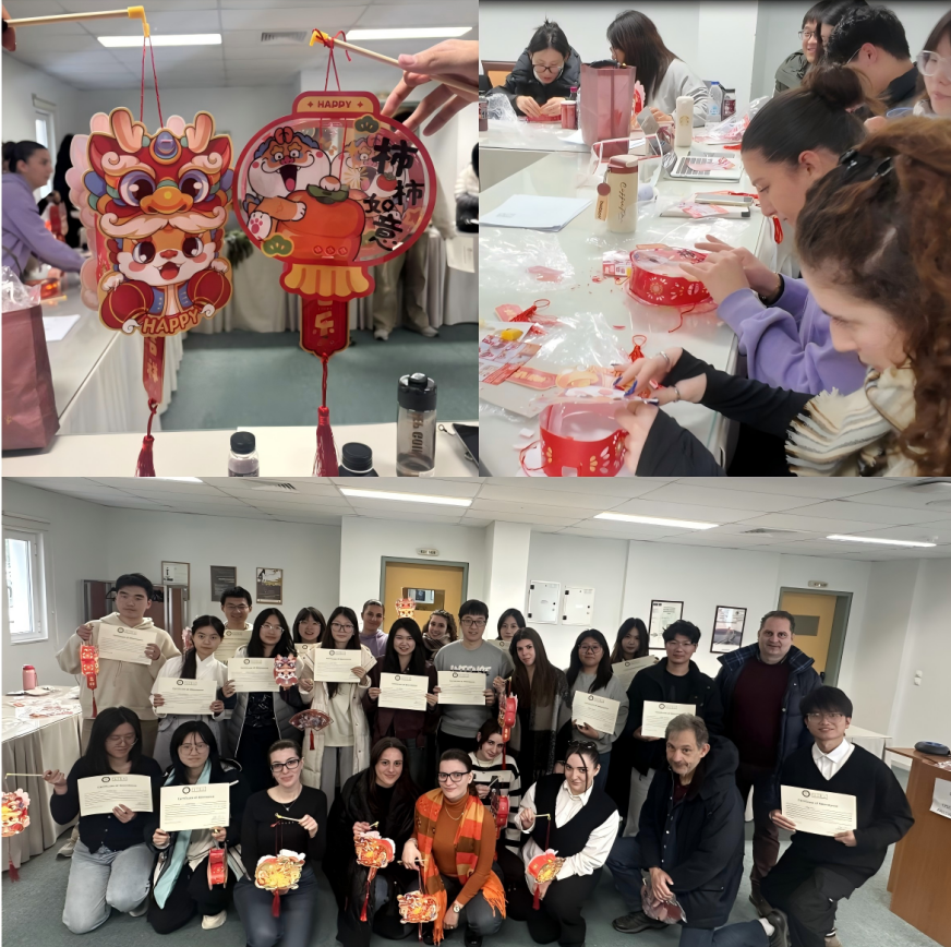 During the exchange activities at UP, the 12th of February coincided with the Chinese Lantern Festival. SDU students specially planned a “Lantern Making” session, in which Chinese and Greek teachers and students made lanterns together. In the midst of laughter and exchanges, the teachers and students of UP not only learned how to turn a piece of ordinary paper into a work of art that symbolizes reunion and hope, but also experienced the strong Chinese sentiment. The lanterns slowly lit up the night sky, as if reflecting the warm picture of two ancient civilizations meeting and reflecting each other at this moment.